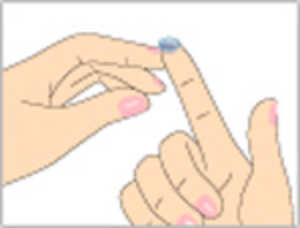 容器を開けたら、人差し指のはらにレンズを吸いつけるようにして、レンズ容器から取り出します。(その際に、レンズを2つ折りにしたり、爪を立てたり、容器の縁でレンズを傷つけたりしないようにご注意下さい。