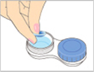新しく液を満たしたレンズケースにレンズを入れて、キャップを締めて4時間以上放置し消毒します。消毒後、レンズケースから取り出したレンズをそのまま装用できます。