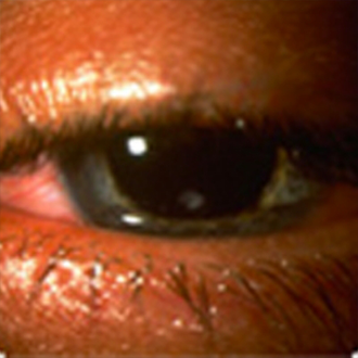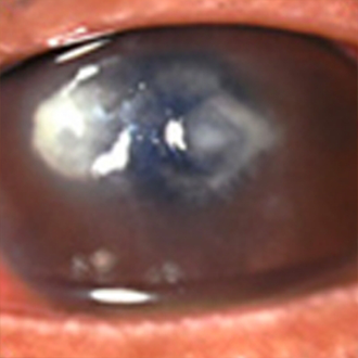 - 大学病院での治療、角膜移植手術が必要になる場合もある、難治性の眼障害です。